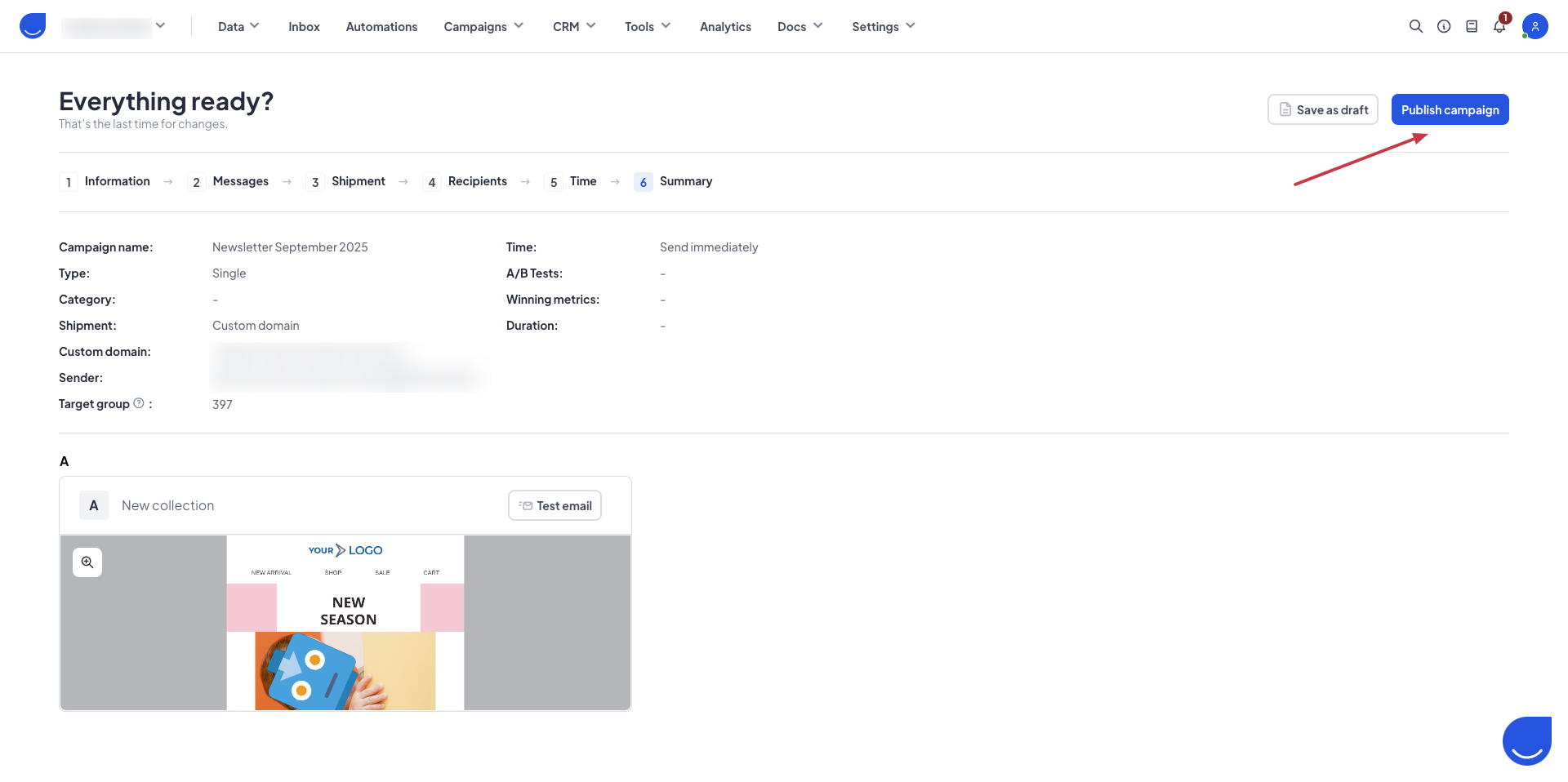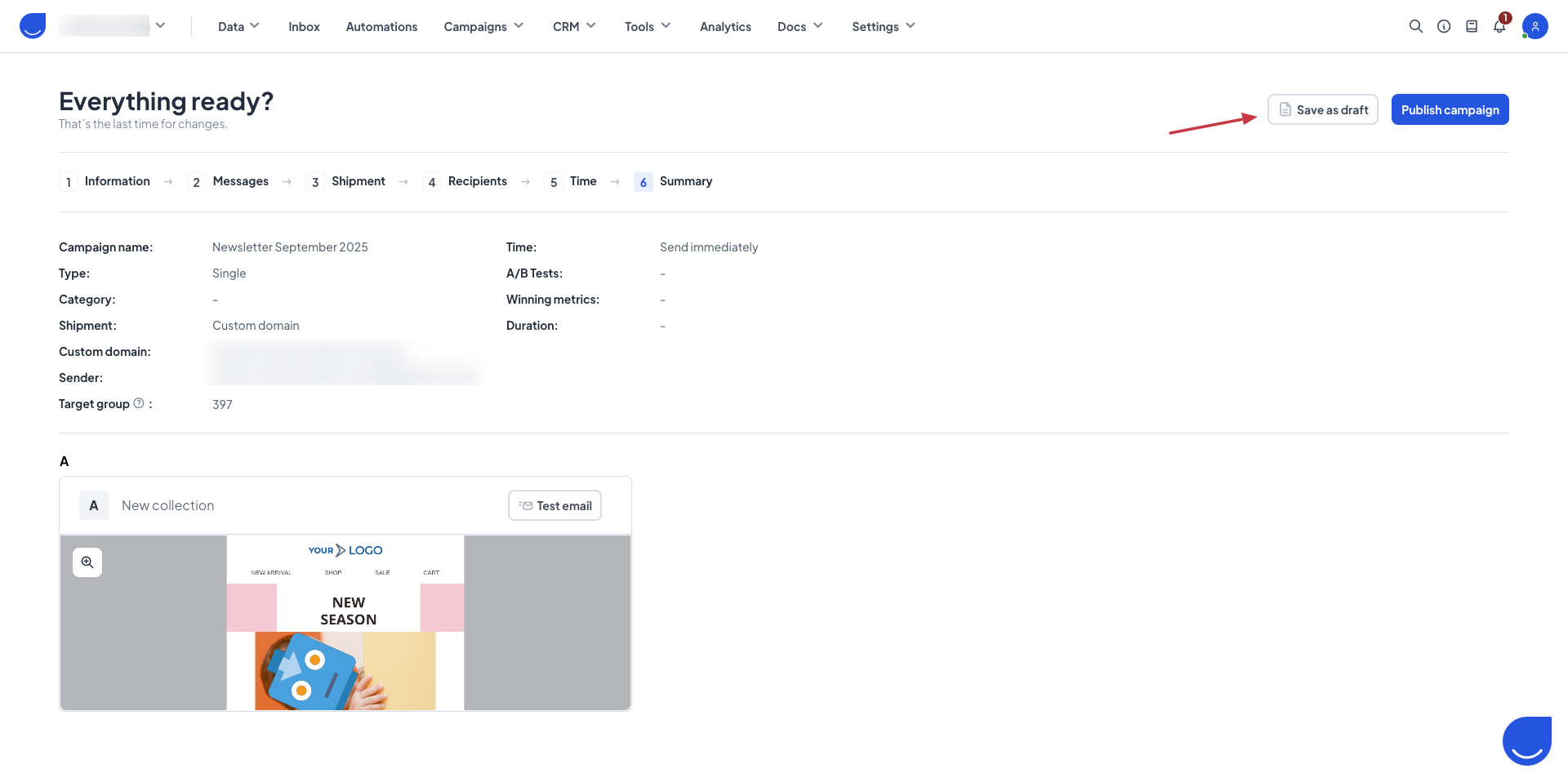 Drafts are ideal for testing, internal reviews, and preparing campaigns in advance.