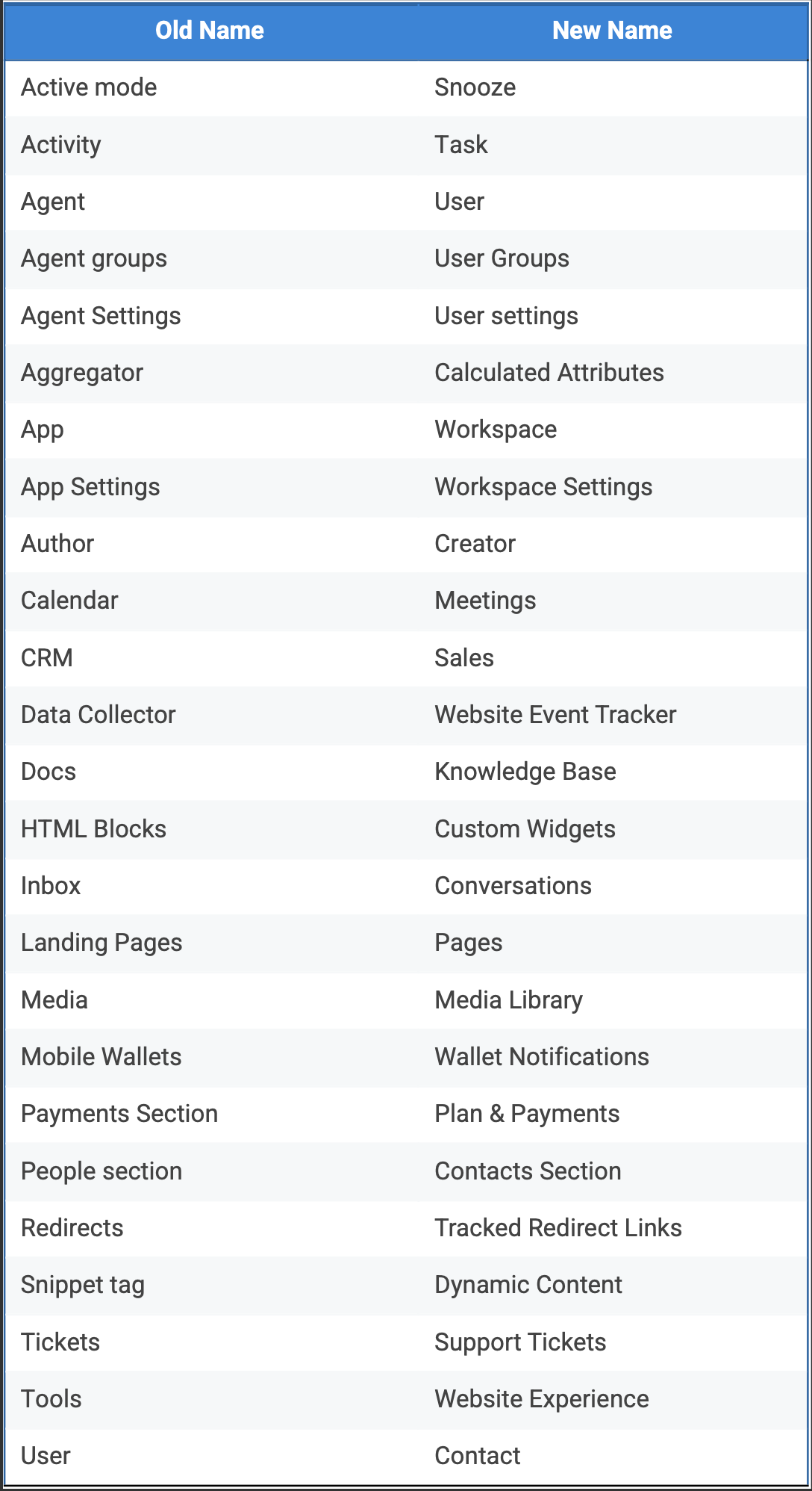 As part of the upcoming release, several features in User.com are getting new names to make the app more intuitive and consistent. This guide provides a simple reference to help you understand which features have been renamed, showing both the current and updated terminology side by side. Whether you’re a long-time user or just getting started, this quick comparison will make it easier to adapt to the changes and continue using the platform without interruption.